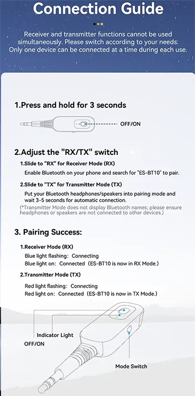 - Bluetooth 5.1, receiving and transmitting two-in-one, support a variety of protocols, miniature and compact, long battery life
